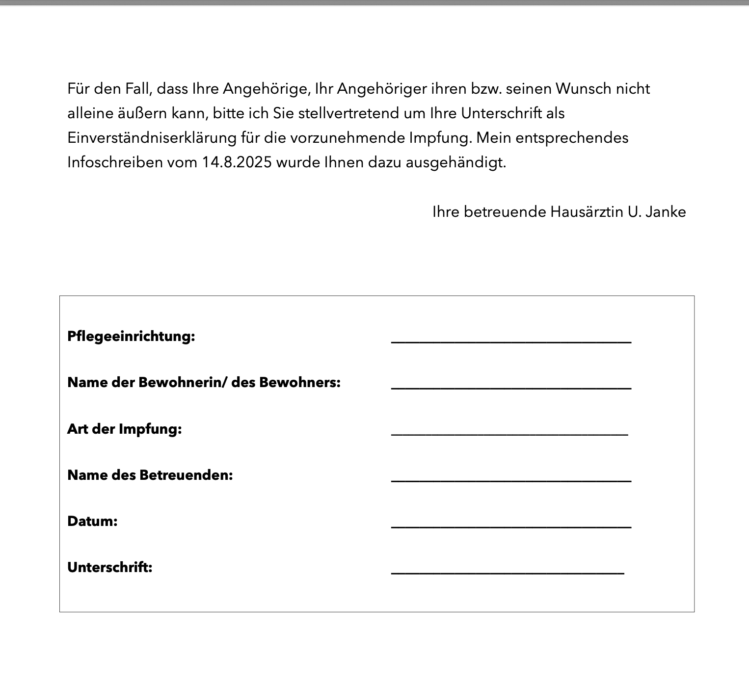 Formular für die Einverständniserklärung betreuender Angehöriger